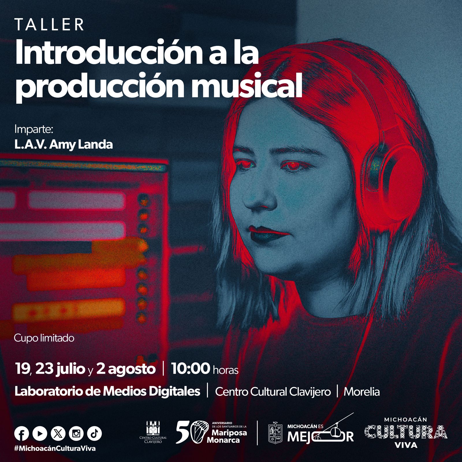 Este taller es ideal para quienes desean explorar el mundo del audio digital de forma creativa, profesional y accesible; tiene cupo limitado. Las inscripciones se encuentran abiertas en amy.landa@umich.mx.
