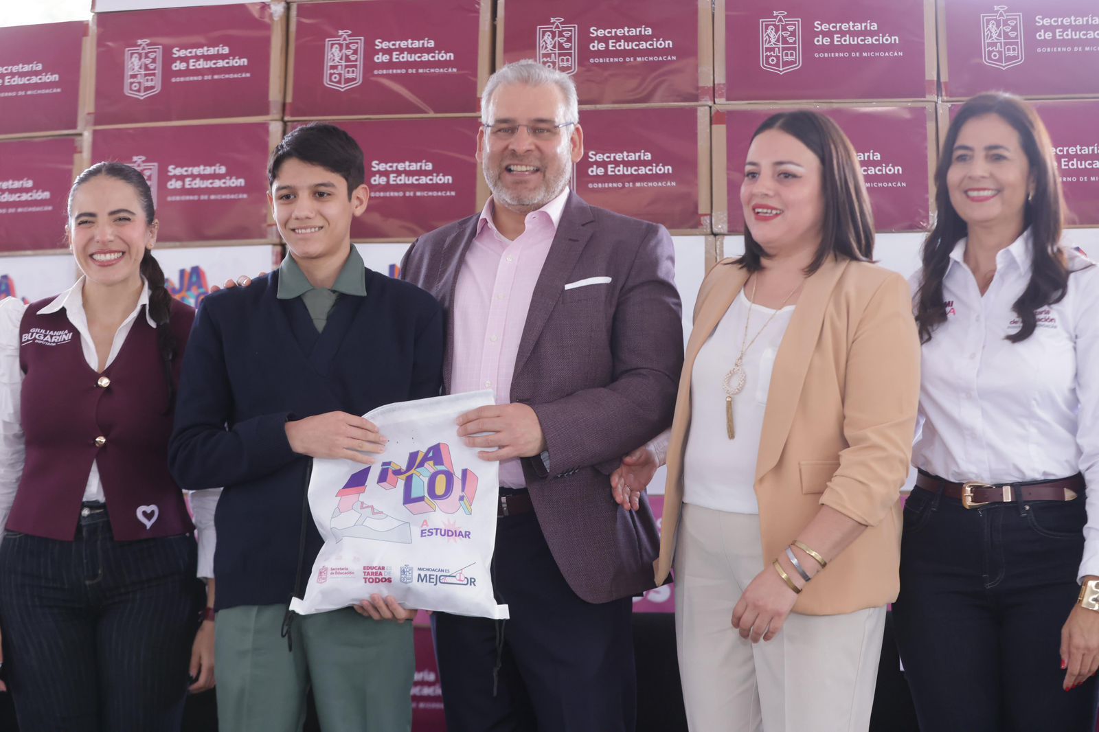 En la Escuela Secundaria Federal No. 10, informó que en los 113 municipios del estado se reparten más 204 mil pares de tenis, elaborados en talleres mexicanos con piel para una mayor durabilidad, con un presupuesto de 92.8 millones de pesos, al señalar que invertir en educación es hacerlo en el desarrollo de Michoacán.
