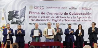 Morelia, Michoacán, 26 de febrero de 2026.– A fin de agilizar y simplificar los trámites que realiza la población ante el Gobierno de Michoacán y el Gobierno Federal, el gobernador Alfredo Ramírez Bedolla firmó un convenio de colaboración con José Antonio Peña Merino, titular de la Agencia de Transformación Digital y Telecomunicaciones. “Uno de los … Sigue leyendo Bedolla y federación refuerzan digitalización para agilizar trámites