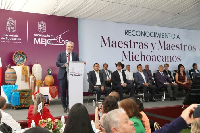 Morelia, Michoacán, 1 de agosto de 2025.- “Con los maestros todo, sin ellos nada”, reiteró el gobernador Alfredo Ramírez Bedolla, al informar que durante su administración se han pagado más de 90 quincenas puntuales, completas y consecutivas a más de 72 mil docentes michoacanos.