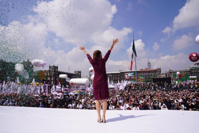Ciudad de México, 05 de octubre de 2025.- Como la primera mujer Presidenta, la Jefa del Ejecutivo Federal, Claudia Sheinbaum Pardo, reafirmó que, México va por el camino correcto, esto durante el cierre de su gira nacional de rendición de cuentas con motivo de su primer año de Gobierno, ante miles de mexicanas y mexicanos reunidos en el Zócalo de la Ciudad de México.