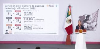 Ciudad de México, 2 de marzo de 2026.- La presidenta de México, Claudia Sheinbaum Pardo, informó que al cierre de febrero de 2026 el país alcanzó 22 millones 527 mil 854 puestos de trabajo afiliados al Instituto Mexicano del Seguro Social (IMSS), una cifra récord para este mes y la quinta más alta registrada en … Sigue leyendo México alcanza cifra histórica de empleo formal en febrero de 2026: más de 22.5 millones de puestos registrados