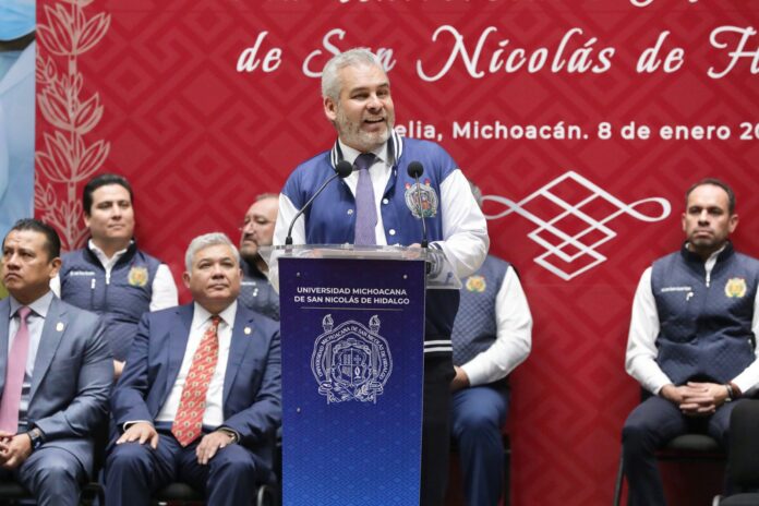 Morelia, Michoacán, 26 de octubre de 2025.- El gobernador Alfredo Ramírez Bedolla adelantó que la Universidad Michoacana de San Nicolás de Hidalgo (UMSNH), recibirá en 2026, un presupuesto de 4 mil 779 millones de pesos, lo que significa un incremento de 7.35 por ciento con relación al 2025.