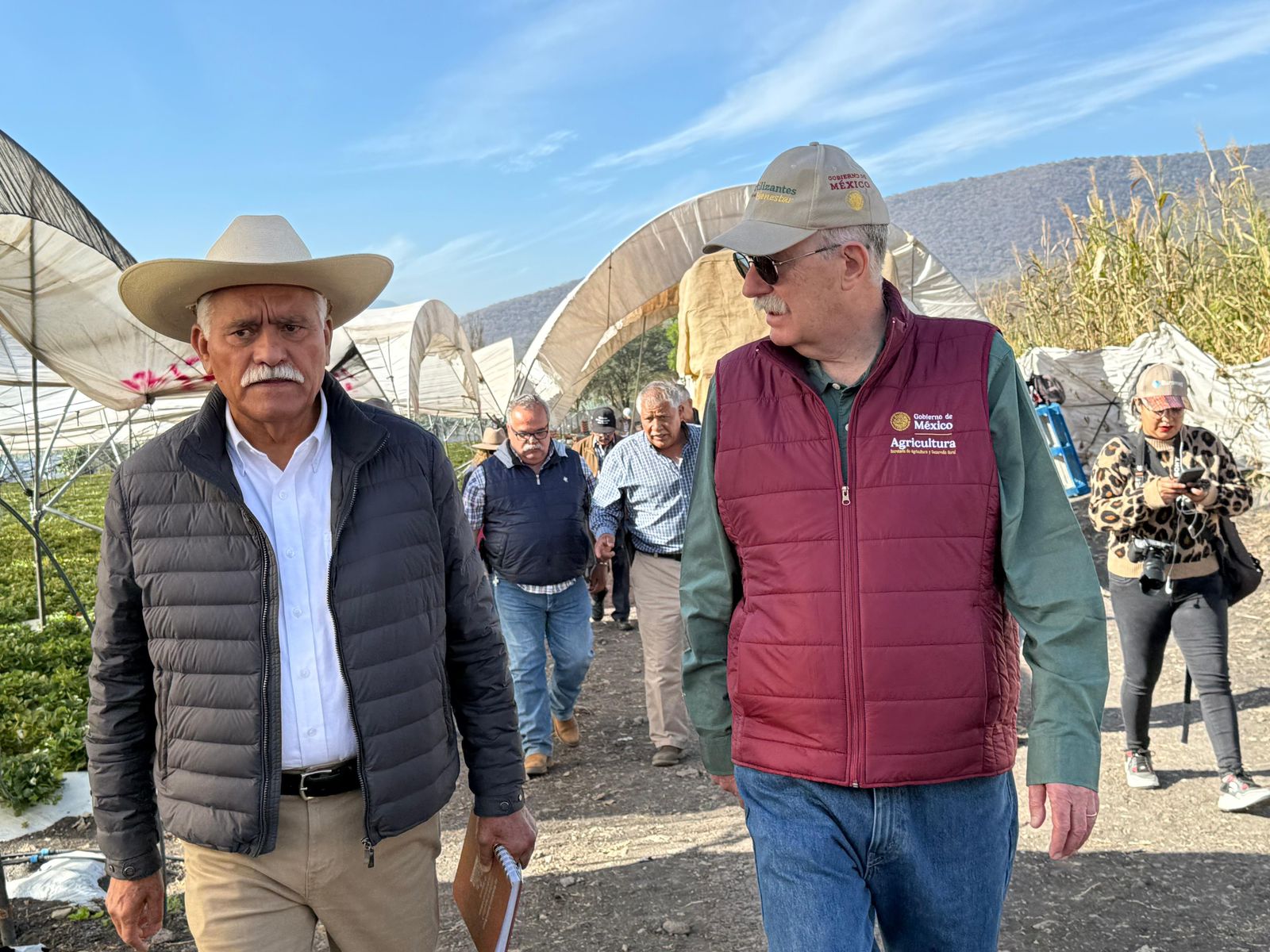 Zamora, Michoacán, 7 de febrero de 2026.- La Secretaría de Agricultura y Desarrollo Rural de Michoacán (Sader), encabezada por Cuauhtémoc Ramírez Romero, realizó una gira de trabajo junto al titular de la dependencia federal, Julio Berdegué Sacristán. El objetivo fue presentar a pequeños productores de fresa los beneficios del Plan Michoacán por la Paz y la Justicia, que incluye estrategias de sanidad, reducción de costos y acceso a créditos de hasta 1.3 millones de pesos con una tasa anual preferencial del 8.5 por ciento, impulsando así la competitividad y comercialización del fruto.